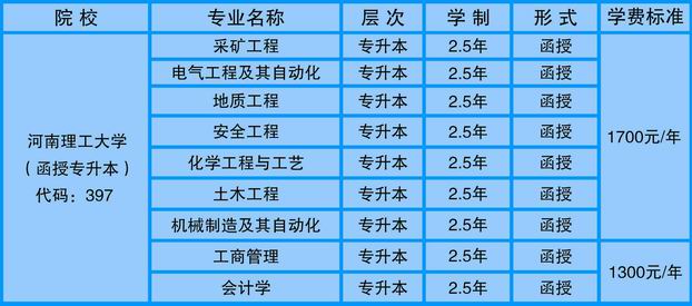 2014年经省招办批准,河南理工大学平顶山函授站(平顶山职业技术学院成教学院)继续面向企业和社会招收函授专升本学生,具体事宜如下。