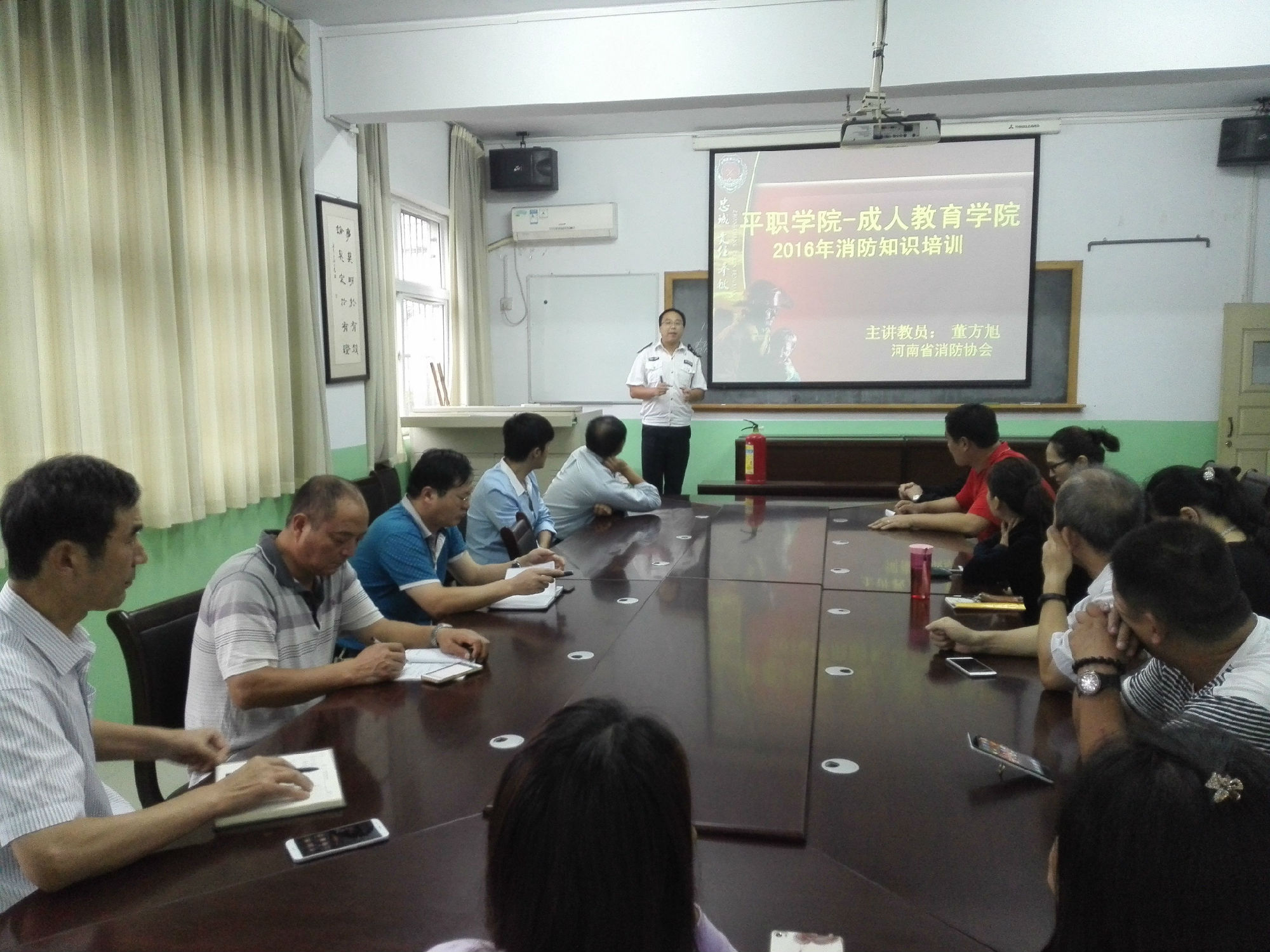为进一步提高广大教职工的消防安全意识与技能,9月26日下午,成教学院聘请河南省消防协会董方旭教员在工贸校区开展了消防安全知识培训。