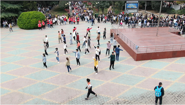 本次活动是院团委“青春心向党建功新时代”主题系列活动中的一个,由校学生会同学们自编自导自演,同学们经过半个月的紧张准备,克服没有演出经验的困难,不断练习,最终成功上演,同学们希望用这种轻松活泼的“快闪”形式,展示当代大学生的青春活力和风采,献礼新中国成立70周年和五四运动一百周年。(彭东)