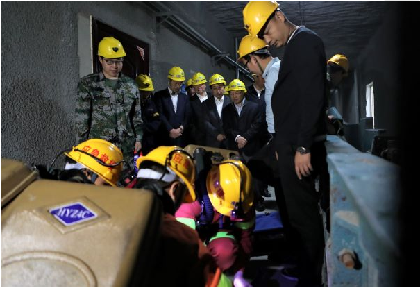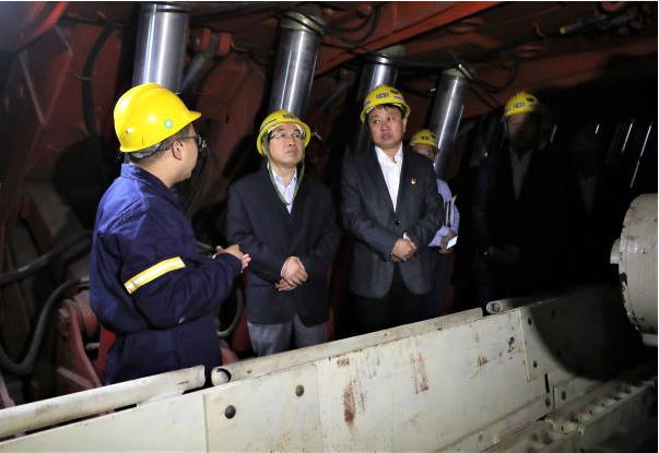 到校后,李毛书记一行直奔教学矿井实训基地,来到“井下”,了解教学矿井功能定位、煤炭产业与专业对接、课程内容和工作岗位对接等相关情况。李书记对学校的做法表示肯定,并就一些问题和现场人员进行了深入交流。“升井”后,李毛一行参观了汽车实训室,了解了我校转型发展开办社会专业和学生就业相关情况。