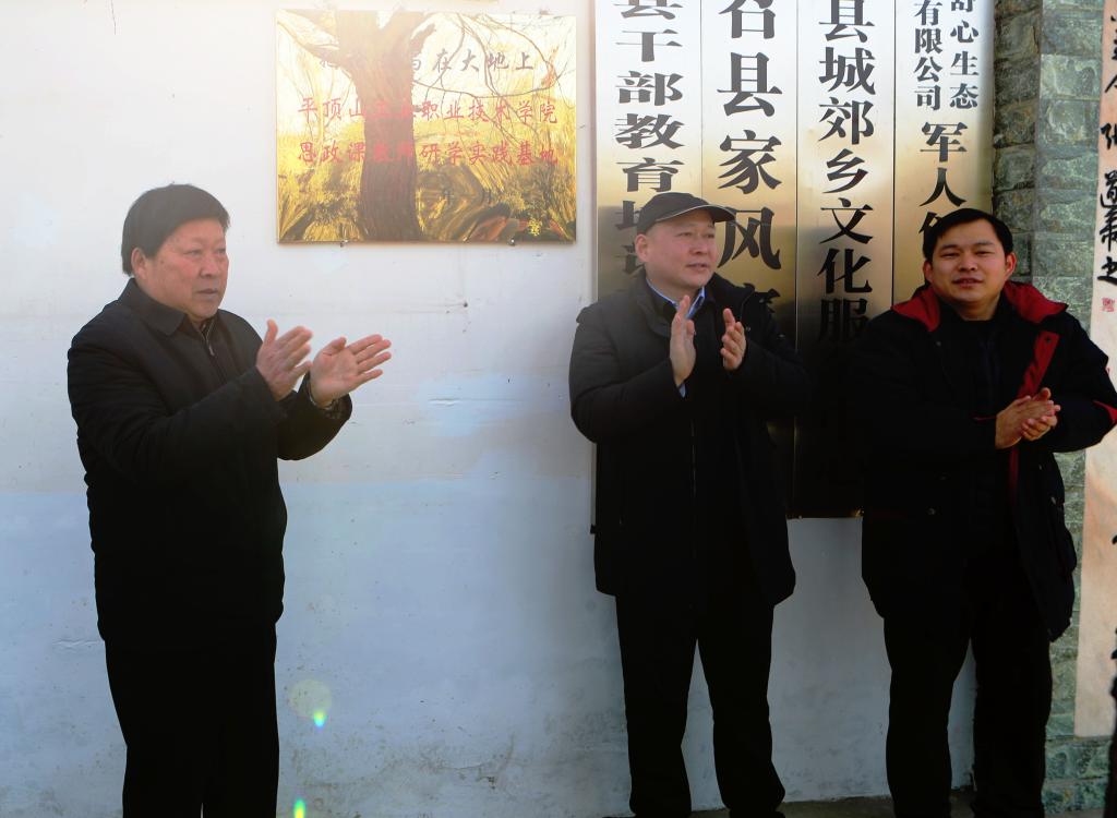 “农村是个广阔的天地,在那里可以大有作为。”为促进思政课教师提质培优计划的实施,1月9日上午,“把论文写在大地上:学校思政课教师研学实践基地”在南召县城郊乡竹园沟村廉政文化基地挂牌建立。学校党委书记毕晓阳,省派驻竹园沟村第一书记、省教育厅思政处副处长方治强共同为实践基地揭牌。校领导宋伟毅、张立新,南召县政协党组书记张三让,城郊乡党委书记薛结从参加了实践基地揭牌仪式。