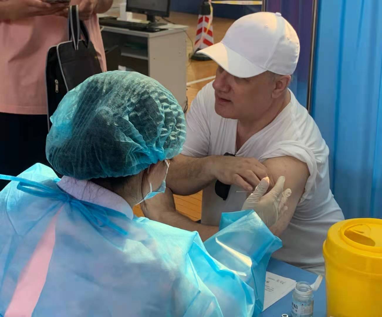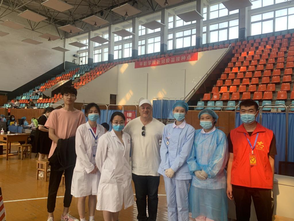 5月20日上午,学校美国籍教师李百瑞(Barry)在国际合作学院相关人员的陪同下来到综合体育馆新冠疫苗接种中心接种疫苗。