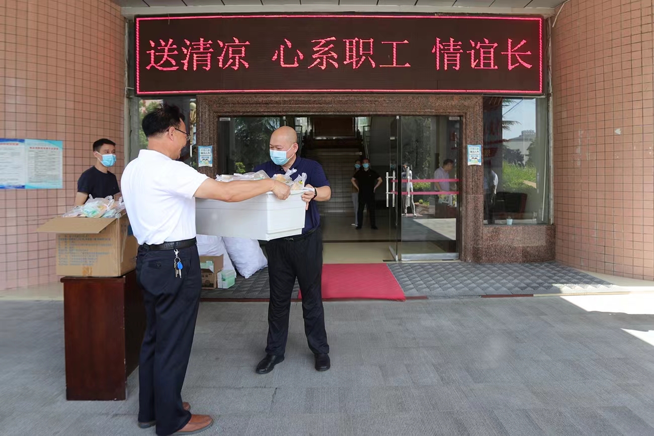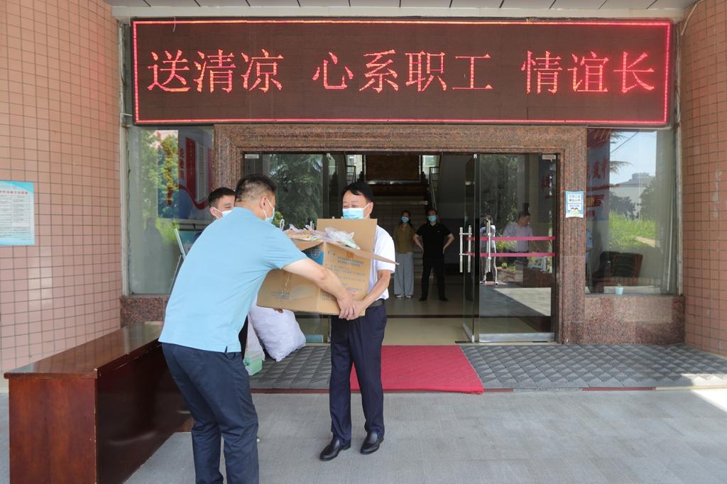 7月25日上午,学校开展“夏送清凉”活动,为暑期坚守工作岗位的教职工送去防暑降温物品,感谢他们在高温下坚守岗位的辛勤付出。