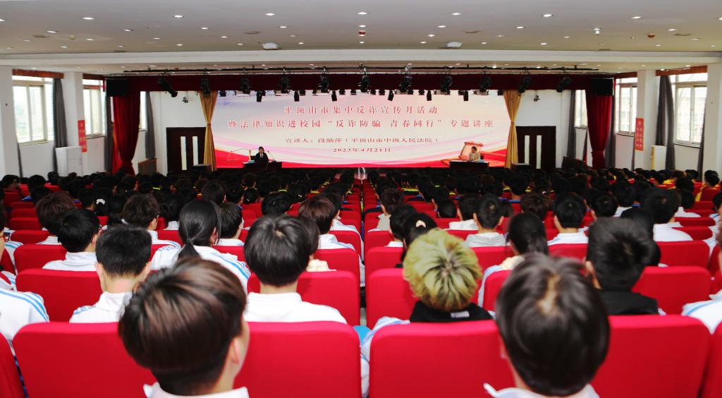 4月21日下午,学校在2号楼701报告厅举行“反诈防骗 青春同行”专题讲座,讲座邀请平顶山市中级人民法院段励萍法官主讲,学生处、武装保卫处等相关部门负责人,学生代表400余人参加了讲座。讲座由督导处法务科负责人主持。