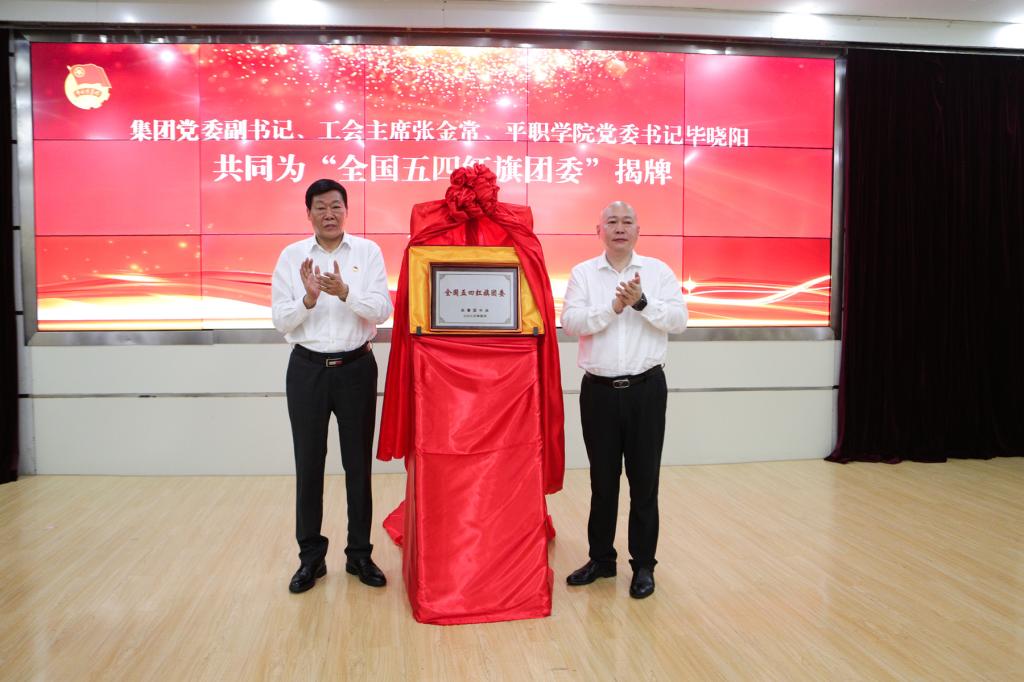 集团党委副书记、工会主席张金常,校党委书记毕晓阳共同为“全国五四红旗团委”揭牌