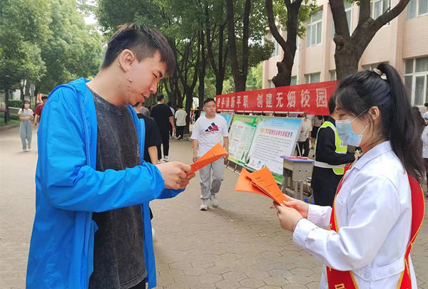 活动现场,学校向全校师生发出创建“无烟校园”倡议,将制作的“世界无烟日”宣传展板竖立在2号教学楼前,校医务人员把印制的千余份“世界无烟日”控烟专题宣传手册发放到师生手中。在控烟宣传员的耐心讲解下,师生对香烟的主要成分、吸烟导致的疾病、二手烟的危害和戒烟的好处等方面有了全新的认知,同学们纷纷表示,要积极争创“无烟宿舍”“无烟班级”,共创无烟校园,把学到的禁烟知识与技能向家庭、亲朋好友和社会传播,做一名优秀的控烟宣传员。