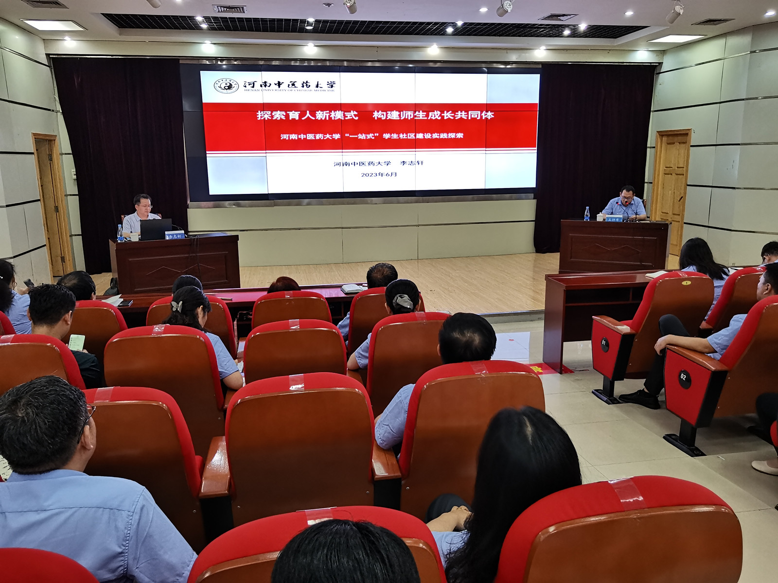 本次专题讲座是我校积极探索“一站式”学生社区综合管理模式建设的具体实践。下一步,学校将以河南中医药大学“一站式”学生社区建设为标杆,结合我校实际,以学生发展为中心,尽快尽早推进“一站式”学生社区建设工作,把“一站式”学生社区打造成学生教育生活共同体,探索协同育人的新机制,更好地实现全员育人、全程育人、全方位育人,培养德智体美劳全面发展的社会主义建设者和接班人。