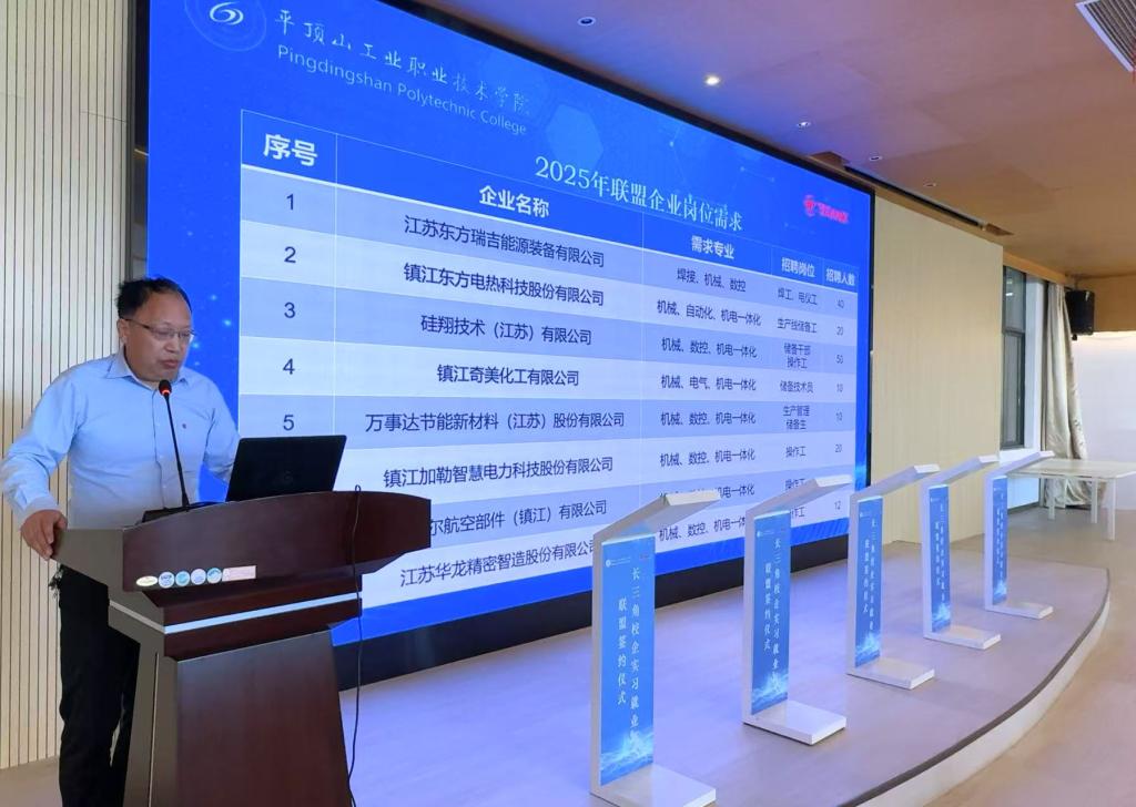 大会对联盟企业2025年300余个实习就业岗位进行了发布,东方瑞吉能源装备有限公司与2025届在镇江实习的应届毕业生代表进行了就业协议的签订。