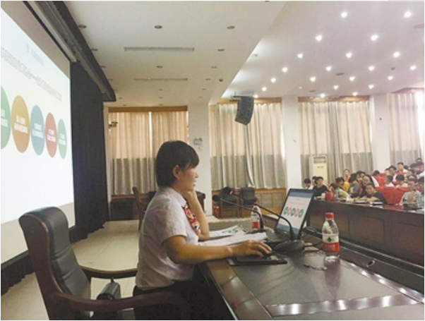 月12日,市郊农信联社营业部网点负责人随欢欢在平顶山工业职业技术学院2号楼701报告厅为该院学生做专题讲座。