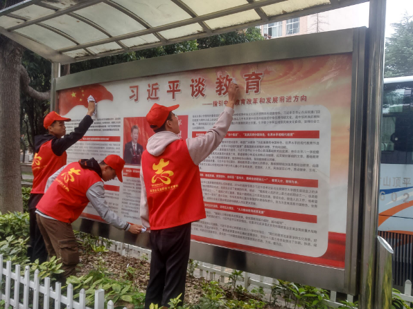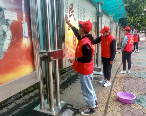 早上,来自各个班级的35名志愿者在2号教学楼前准时集合,他们身着红马甲,头戴小红帽,对文化路两旁的宣传栏及教学区,生活园区进行了细致全面的打扫。将身边卫生打扫干净,不仅为同学们创造了干净、整洁的学习,生活环境,也培养了同学们的志愿服务精神,通过志愿者的身体力行,影响同学们能更好的去爱护身边的环境卫生。(陈真)