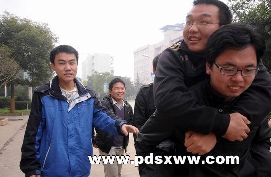 帮扶小组的同学背着张志伟去上课 鹏程摄