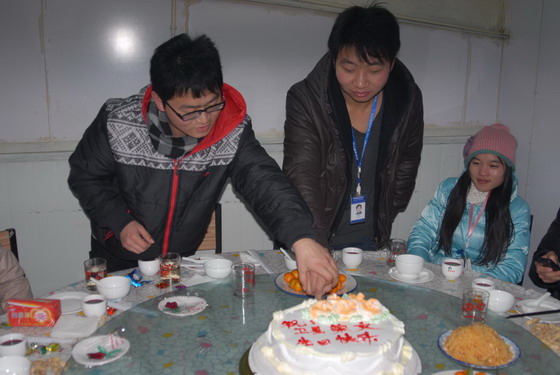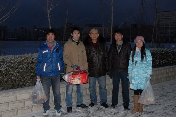 当梅处长听说在此实践的资源开发系两名学生段荣文、吴卫星在除夕夜要过生日的时候,梅处长立即带领学生代表外出选购生日蛋糕,除夕晚上在富士康的生活区川味川饭店安排了生日宴。梅处长带领同学们一起为两位同学祝福生日快乐,两位同学开心地说:平生第一次度过了没有父母陪伴的生日,但是这个生日非常快乐!更有意义!生日宴结束后同学们一起去梅处长下榻的住所看春晚,一直到晚会结束,梅处长亲自护送学生回到宿舍。