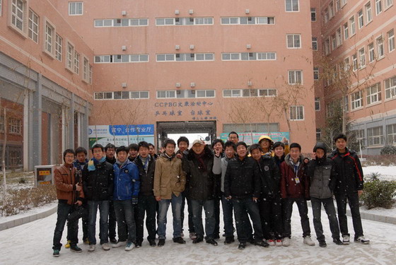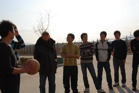 大年初二下午,梅处冒着寒风带领学生举行10级与11级之间的篮球比赛。