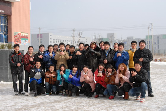 大年二十九上午,山东烟台富士康生活园区,空中雪花纷飞,大地银装素裹。一群年轻的大学生,簇拥着平职学院就业处处长梅胜利,集体向着家乡的方向,抱拳给家乡亲人拜年。同学们的青春朝气、欢声笑语与纷飞的雪花交织着,使寒冷的大地增添了喜庆新年的欢乐气氛!然后梅胜利处长又被这一群孩子们包围着互相祝福共庆新年。