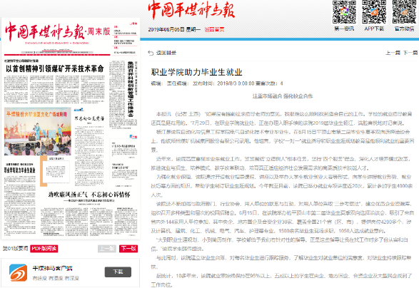 本报讯(记者 王燕)“如果没有提前征求指导老师的意见,我很难这么顺利找到适合自己的工作。学校的就业指导教育还真是挺有用的。”7月29日,在职业学院就业处,正在办理入职手续的该院2019届毕业生杨江,满脸喜悦地对记者说。