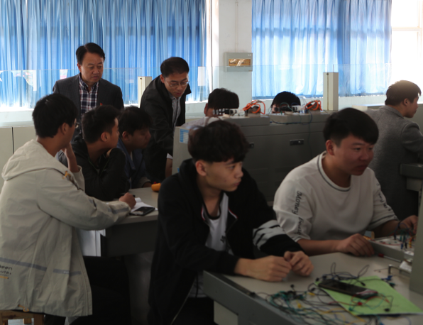 李树伟先后来到1号教学楼、本科班教学楼,随机走进了马克思主义学院张健老师的《思想道德修养与法律基础》、体育与心理健康教学部郑路老师的《大学生心理健康教育》、汽车工程学院朱玉丽老师的《机械制图》课堂,对教师们准备充分、逻辑清晰、授课效果好给予了充分肯定,并就思政课程改革、课程思政建设、实训室运行、本科班教学管理等问题,与任课教师、教务处负责人及相关部门负责人进行了交流指导。并深入实训室了解实训室设备运行及实训课开展情况。