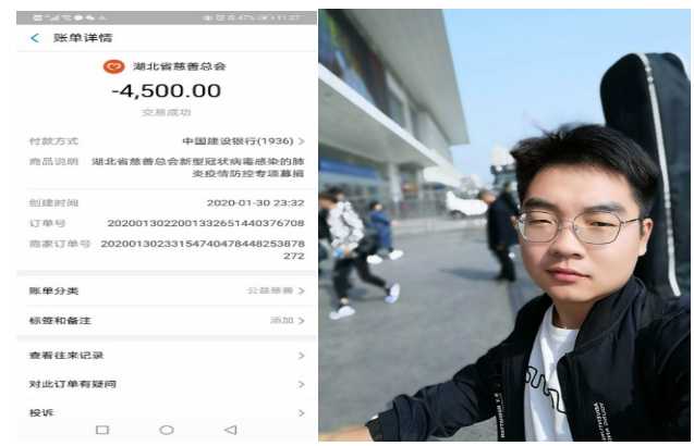 我校平煤工程技术学院18级机械设计制造及自动化1班学生闫宇飞,他听闻武汉疫情之严重、形势之急迫,在详细了解捐款渠道后,动员全家为武汉捐款,共筹措资金4500余元。他的捐款受到了广大师生的积极响应,大家纷纷行动起来,用自己的方式援助社会。有的同学去做志愿者帮助他人;有的同学为灾区人民邮寄口罩。小爱暖心,大爱无疆!同学们真诚温馨的援助,为这凛冽而冷酷的寒冬,添上了几分温暖。