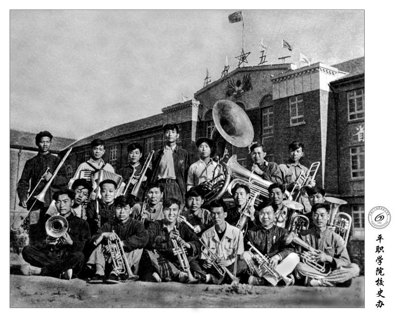 煤炭工业部平顶山煤矿学校军乐团成立于1958年。当时平顶山市逢年过节,有大型纪念、庆祝活动,乐队都会现场表演。乐队由学校副校长陈章德任指挥,乐队共40个队员,都是学生。乐器大号、小号、萨克斯、黑管、手风琴、长笛……均为煤炭工业部为丰富学生的精神文化生活而购买的。