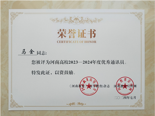 近日,河南省高等学校宣传教育服务中心、河南教育报刊社融媒体中心和《河南教育》(高等教育)杂志、河南教育宣传网联合公布了河南省高校2023—2024年度宣传先进单位、优秀通讯员、优秀新闻作品评选结果,我校荣获集体、个人和优秀新闻作品多项表彰。