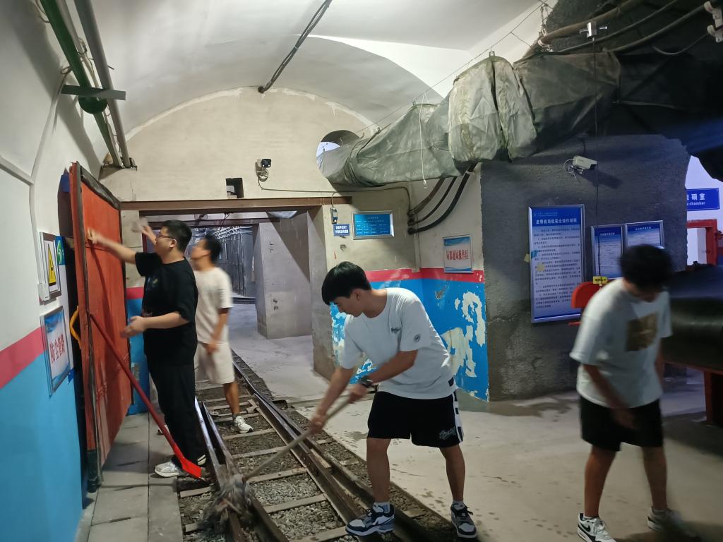 暑期来临,安静的校园里还有一批大学生志愿者没有离校返乡,他们是资源开发学院22级张铭宇、牛志帅等十余名学生,返乡之前他们决定到他们热爱的课堂“全国煤矿智能化人才培养基地”做义务劳动。他们忙碌的身影穿梭在中央水泵房,中央变电站,运输大巷,智能化掘进工作面、井底车场、避难硐室……。他们一边清扫,一边回忆着课堂温馨的场景,因为他们知道,干净整洁的智能化矿井就是他们的家。“全国煤矿智能化人才培养基地”不仅为智能化开采等专业学生提供实景式实习实训、综合训练,同时也面向煤炭行业开展技术技能培训、技能等级认定、技术攻关、技能大赛。他们今天所付出的辛劳,不仅为学校增光,更让前来学生、培训、参观的人们近距离感受科技和艺术的魅力,进一步提升校园文明。
