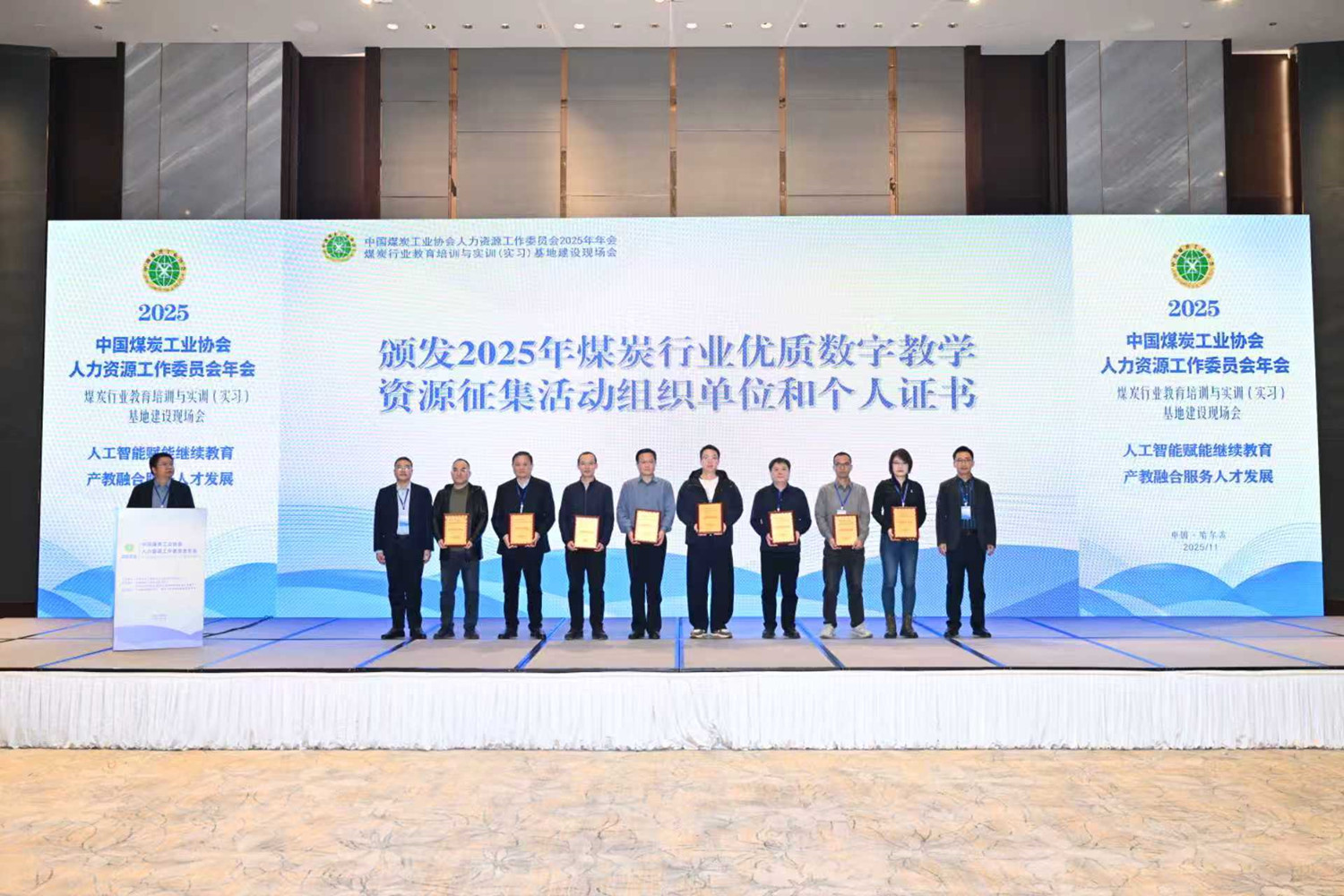 11月19日,中国煤炭工业协会人力资源工作委员会2025年会在哈尔滨隆重召开,我校尼龙化工学院荣获2025年煤炭行业优质数字教学资源征集活动“优秀组织单位”荣誉称号,标志着学校在数字化教学资源建设方面走在了全国煤炭行业前列。