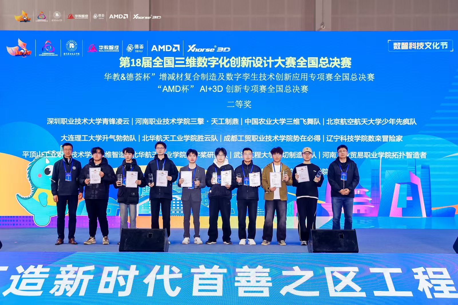 近日,第18届全国三维数字化创新设计大赛“华教&德荟杯”增减材复合制造及数字孪生技术创新应用专项赛全国总决赛在北京石油化工学院圆满落幕。我校参赛团队与哈尔滨工业大学、武汉大学、山东大学、北京航空航天大学、吉林大学、东北大学、深圳职业技术大学等120所高校的200多支队伍同台竞技,经过历时两天的激烈角逐,最终斩获全国增减材复合制造及数字孪生技术创新应用专项赛二等奖。