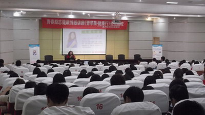 10月24日,由我院心理咨询中心和湛河区妇幼保健院共同举办的《青苹果•健康行》走进高校——青春励志健康情感讲座在图书馆一楼多媒体报告厅举行。本次讲座由平顶山经济生活广播资深主持人、著名情感专家俞慧老师进行主讲,心理中心老师以及服装艺术系、资开系等系部200余名学生参加了本次讲座。