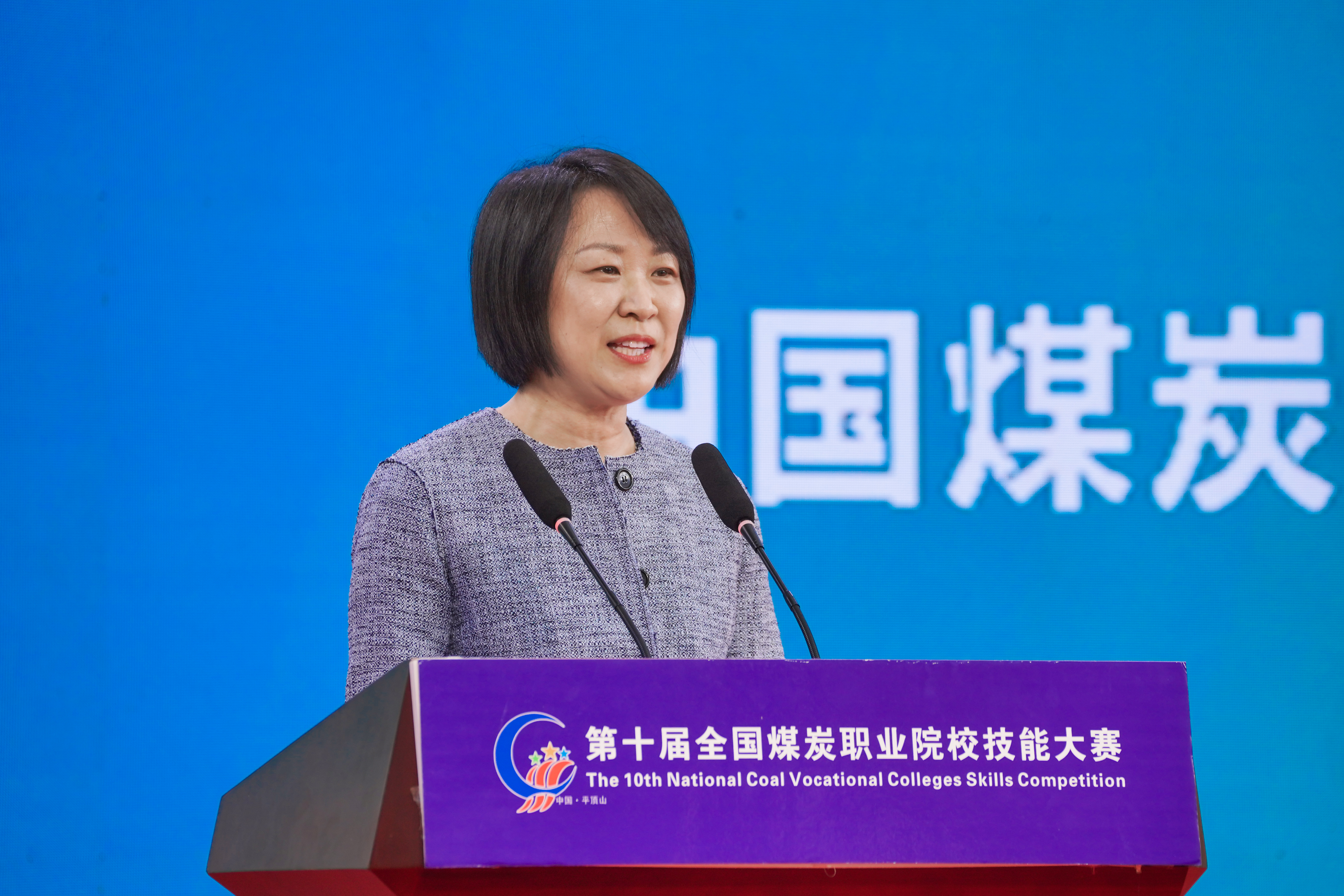 王慧凌讲话,她代表中国煤炭教育协会对大赛的顺利举办表示热烈的祝贺。她指出,煤炭是我国能源安全的“压舱石”和“稳定器”,煤炭行业的可持续高质量发展关系着国家的发展和稳定,立足行业新发展阶段、贯彻新发展理念、构建新发展格局、推动行业高质量发展,离不开高技能人才的创新驱动。她表示,全国煤炭职业院校技能大赛的举办,对进一步完善现代职业教育体系,深化产教融合、校企合作,大力弘扬工匠精神,培养更多适合煤炭行业发展的高素质技术技能人才,具有重要的现实意义和深远的历史意义。她希望,全体参赛选手精心准备、积极参赛,以高尚的竞赛风格、精湛的技术技能,充分展现时代风采,充分展示精益求精的工匠精神,赛出成绩、赛出风格、赛出水平,创造佳绩。