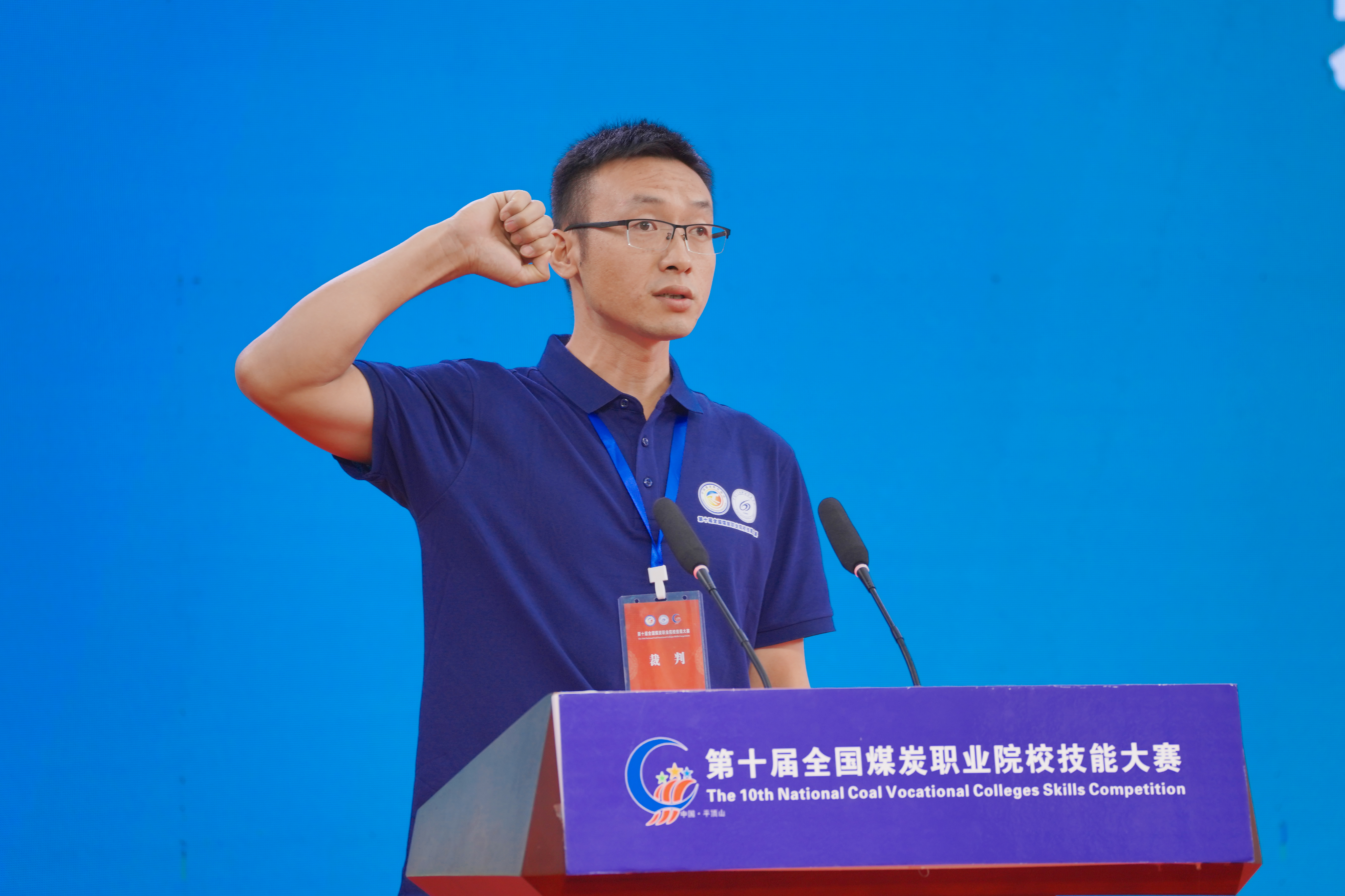 李树伟致辞,他代表学校两万余名师生员工,对大赛的举办表示热烈祝贺。他讲到,一直以来,该校始终坚持企业办学性质不改,服务产业担当不变,特色办学道路不移,改革创新动力不减,产教融合主线不偏,率先建成了全国煤矿智能化开采人才培养基地,合作共建了全国煤炭行业首个产业学院,创新推动了教育链、人才链与产业链、创新链的融合发展。他指出,进入新时代,党中央、国务院高度重视职业教育发展,通过职业技能大赛培养人才、集聚人才,让更多优秀技能人才汇聚一堂,亮出了“绝活”、切磋技艺,破解了人才之“渴”。他表示,学校承办赛项,既是使命和责任,也是对该校工作的肯定和信任,将以争创一流、追求卓越的精神,举全校之力做好大赛的各项服务和保障工作。