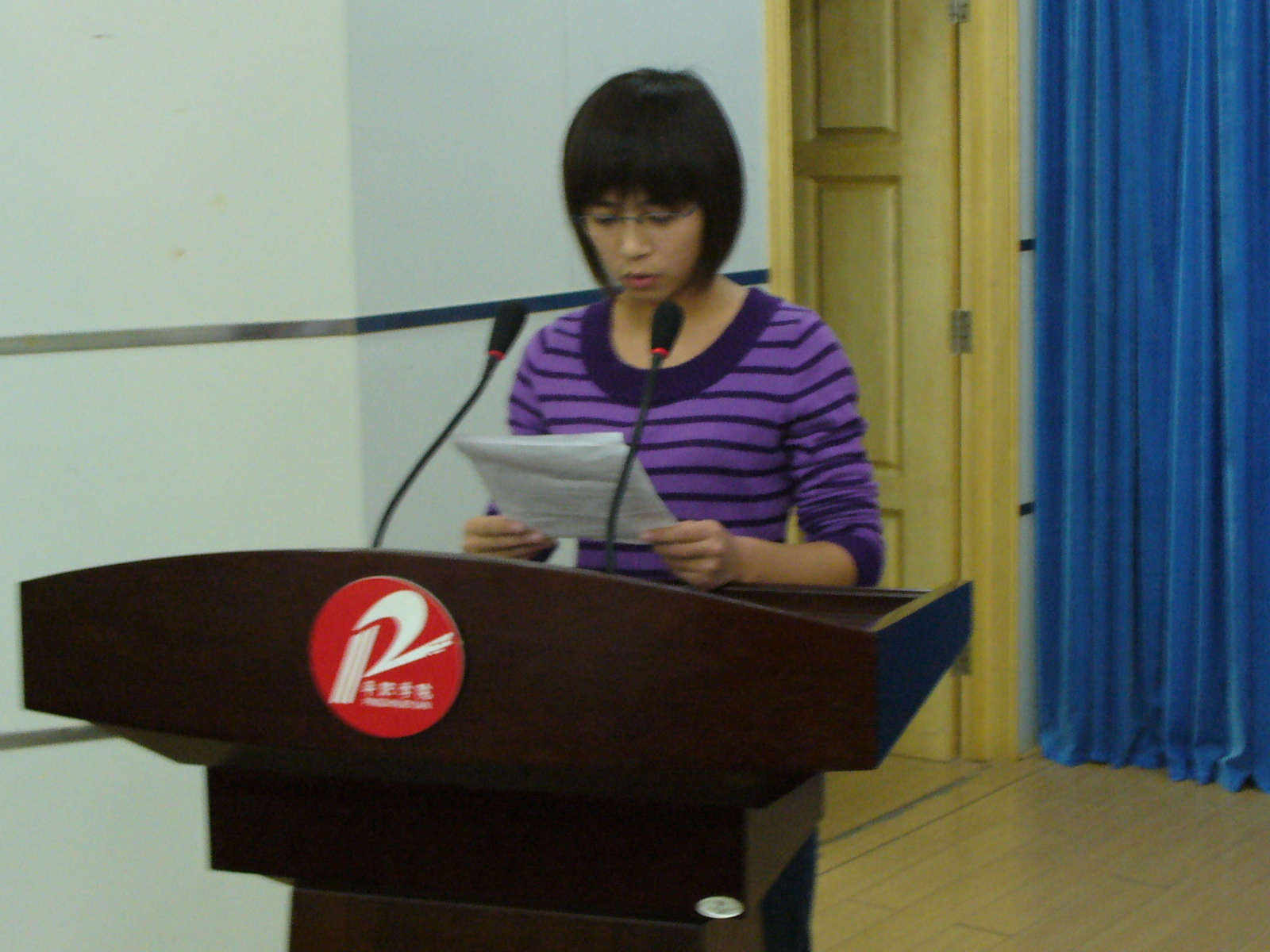 在本次学习经验交流会上优秀学生代表们讲述了他们的学习经验和生活历程。英语协会会长丁亮亮向大家介绍了锻炼英语口语的方法;08级奖学金获得者代表张颖平与大家一起分享了自己一年来的学习经验;09级奖学金获得者代表杨东莉在介绍自己的学习经验的同时,有针对性的提出了新生在学习中遇到的问题。