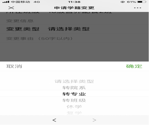 二是有同学之前转专业或转院系了,还有的同学之前入伍、休学等原因无法操作的,请先选择学籍变更,进行相应变更后待院系管理老师审核通过后再操作,从电脑端到手机端有一个小时的延迟,请同学们耐心等待,不要着急。