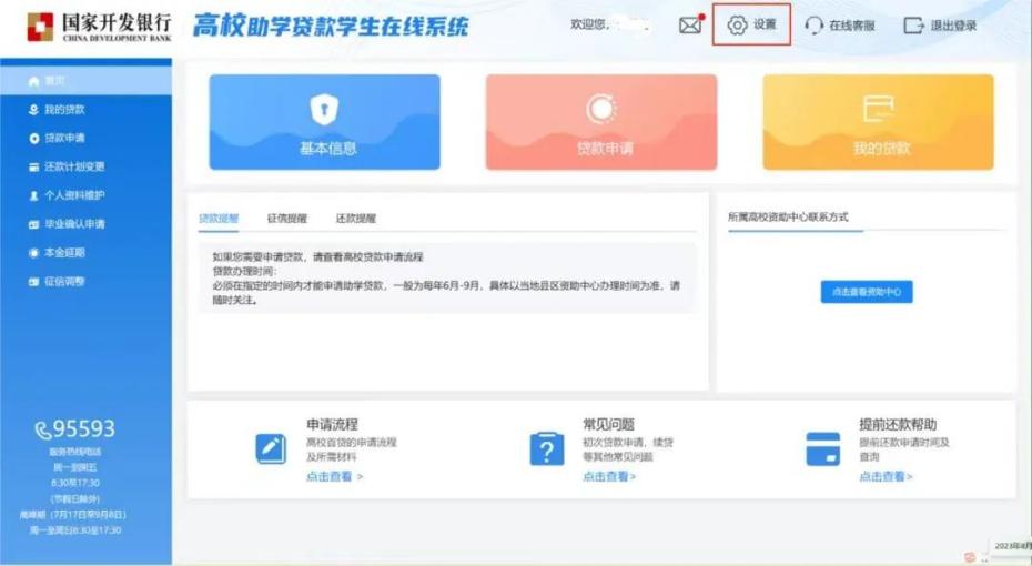 7月1日起,国家开发银行学生在线服务系统界面全新改版(https://www.csls.cdb.com.cn),学生通过身份证号及密码方式登录到系统内部界面,在页面右上角点击设置,选择修改登录手机号,按提示完成手机号码登录方式变更。