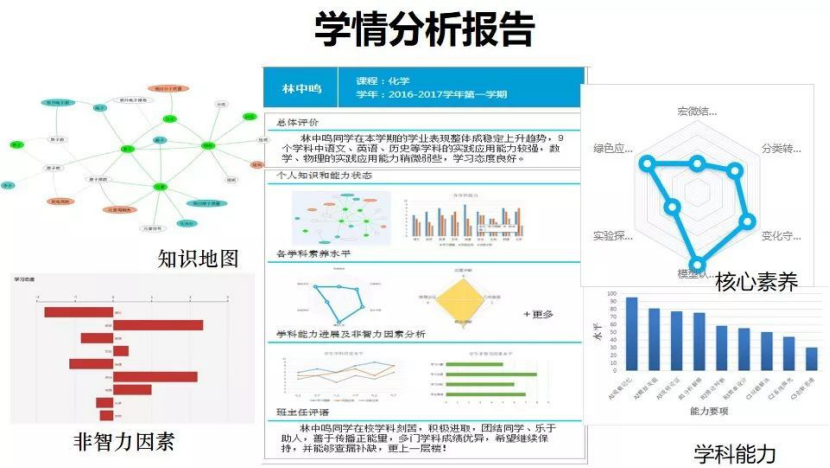 还可以基于数据,对于班级数据进行整体分析和反馈。通过这个分析可以了解整个班级的整体情况,从而让学科老师和班主任老师对整个班级情况进行有效、个性化的干预。为不同的角色提供不同的能力诊断和分析报告。使得这些角色达成对学生学习的共同理解,从而他们采取的教学干预行为能够产生整体的联动效应。