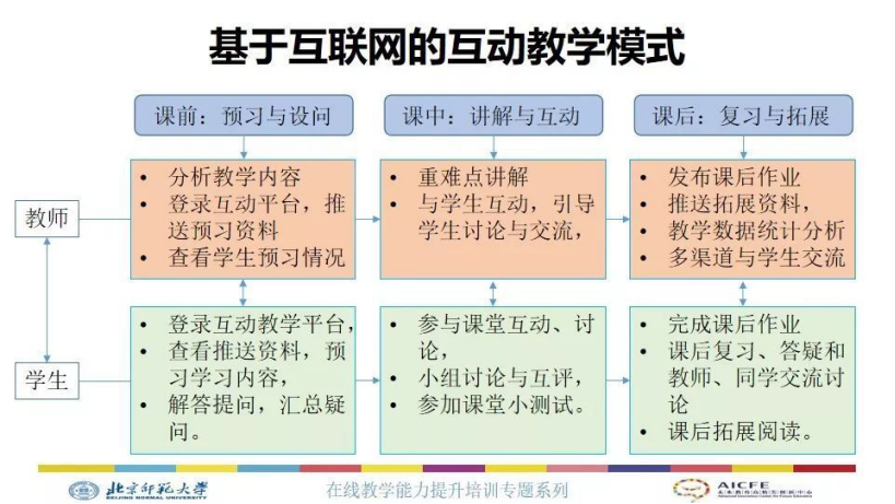 3.老师主要解答学生问题、澄清相关概念、启发在线讨论以及引导学生开展在线交流等,同时通过线上应用练习或者检测来进一步强调、巩固、加深或者是延伸相关知识,这是在线教学模式。