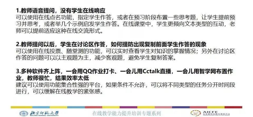 在线翻转课堂教学在实施过程中特别要注意: