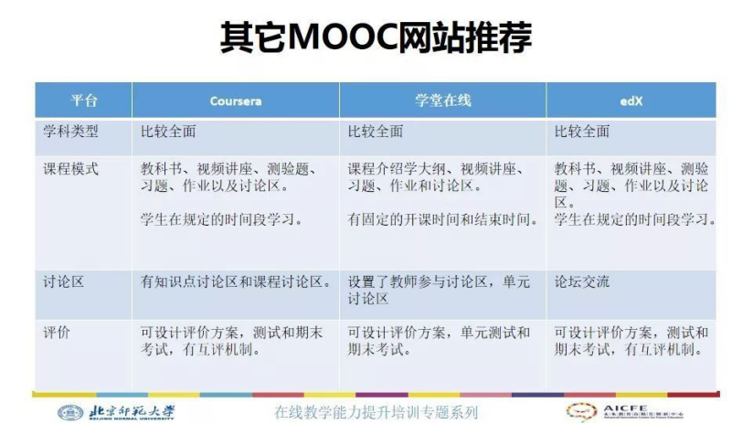 代表性的MOOC平台例如: