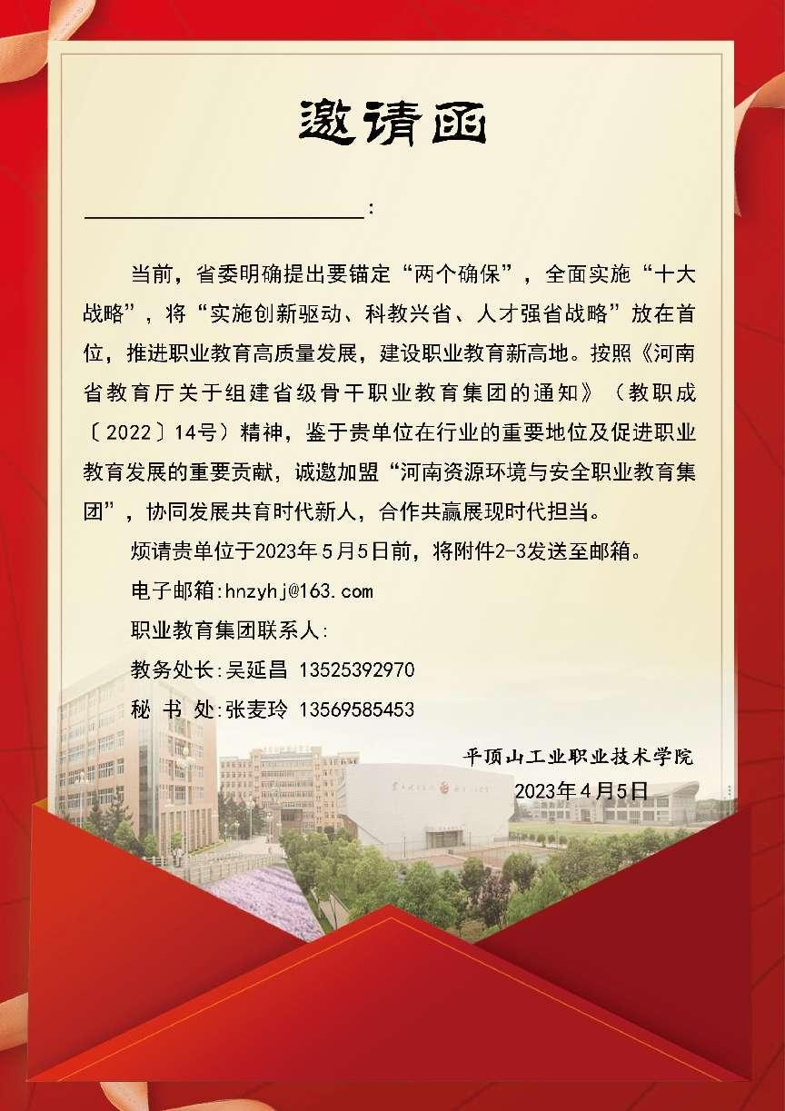 河南资源环境与安全骨干职业教育集团邀请函