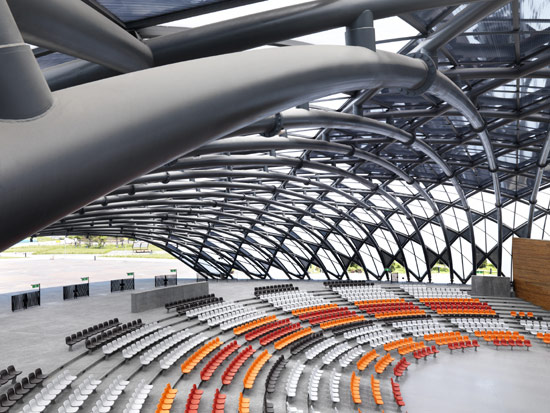 作为2010年台北国际园林和园艺博览会的一部分,台湾王建筑师事务所设计并完成了位于台湾台北市美术博物馆公园的1200个座位的博览馆。
