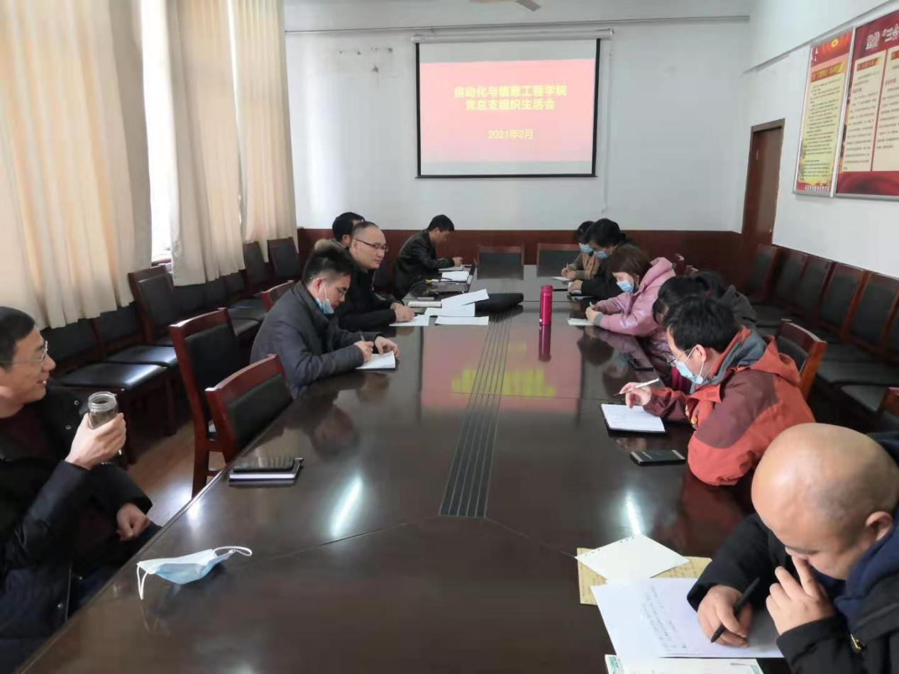 2月3日上午,自动化与信息工程学院党总支在会议室召开了组织生活会。会议由党总支书记主持,党总支全体党员参加会议。
