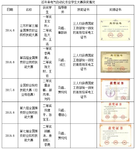 电气自动化技术专业学生多次在国家与省级职业院校技能竞赛以及挑战杯、互联网+等比赛中获奖,分别获得一等奖2人次,二等奖30人次。