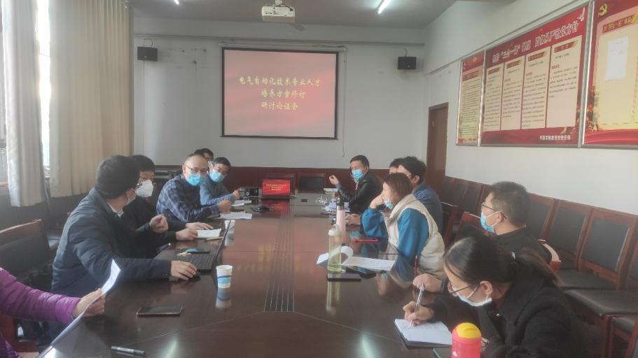 为进一步推进电气自动化技术专业群建设,提升专业服务产业能力,深化校企合作,11月27日上午,自动化与信息工程学院在教研楼四楼会议室,召开了电气自动化技术专业人才培养方案校企研讨会,该院全体教师参加会议。中平自动化有限公司工程师王庚午、平高集团技术中心高级工程师孙珂珂应邀参会。会议还邀请企业专家远程采用进入腾讯会议的形式参会。