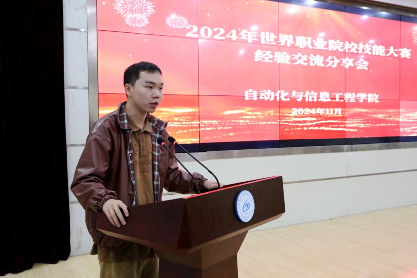 分享会邀请了参加2024年世界职业院校技能大赛的优秀师生代表,他们分别就各自参赛项目的经验进行了深入的分享。其中,电气自动化技术专业学生代表闫伟杰介绍了他们在应急救援比赛中的准备过程,包括技术训练、团队协作以及应对突发状况的策略。闫伟杰表示:“团队的默契配合和持续的技术创新是我们取得好成绩的关键。”
