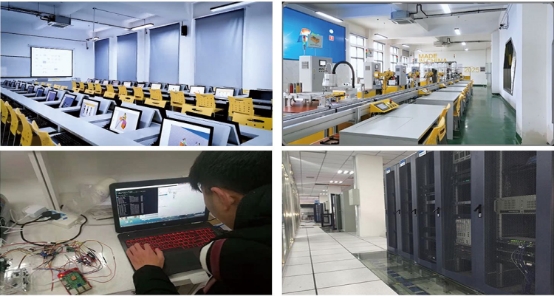 1、教学环境-同步企业真实工作环境:将行业、企业领先技术及设备引入学校。