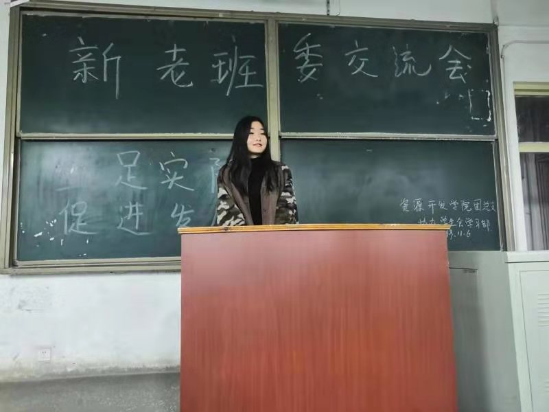 随后,18级班委们通过许多事例先后分享了自己的工作经验,并向19级新班委提出几点建议:如班委之间要学会互帮互助;班委收发的文件和作业要有备份;班委要以身作则为同学们作表率,并用心做好上传下达的工作。班委务必要尽职尽责、不存私心,认真地为同学们服务;要善于总结、勤于思考,在实践中提升自身。并希望在座各位可以发动引领作用,使班级能够更加优秀。